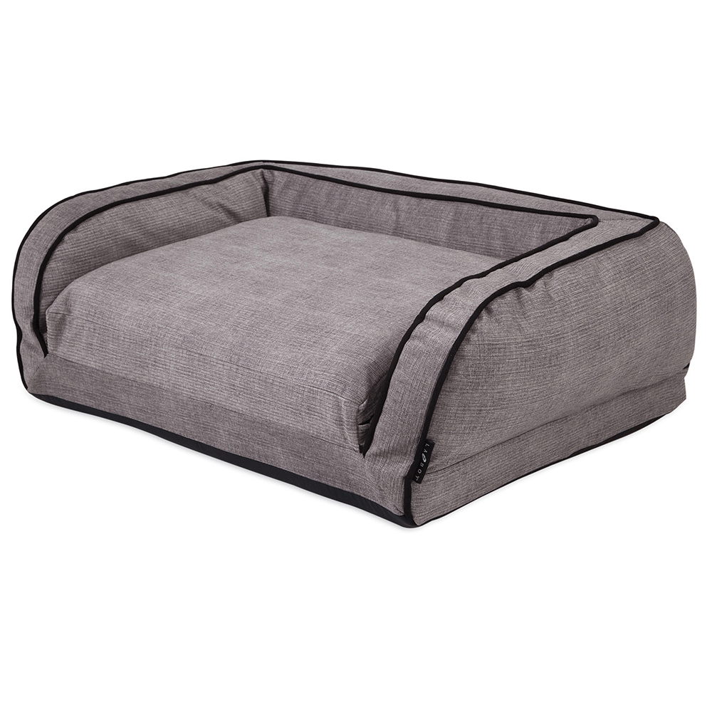 Style that stands up to stains. The Duchess fold-out sleeper sofa with iClean® features all-over gray textured iClean™ fabric, designed to repel messes before they become stains. Easy to clean and soft to the touch, iClean™ is a La-Z-Boy® exclusive. The quilted sleep surface of The Duchess folds out to provide an expanded sleep area, great for larger dogs or multi-pet households. It also folds up to transform into a more compact sofa position, great for smaller dogs. The entire base features premium ComfortCore® GEL, providing five layers of cushion technology, while the sofa-style bolsters are overstuffed with Comfort Select™ fiber, providing added comfort and neck support.