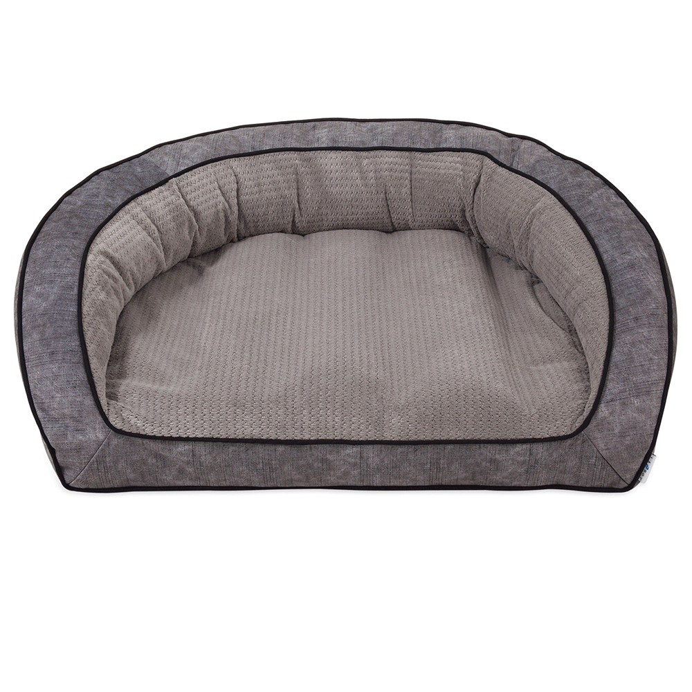 A bigger bed, for the big dogs. Provide your pet with maximum comfort and add some style to your home with the La-Z-Boy® Twill Smoke Harper Sofa Bed. Designed for large dogs and multi-pet households, the Harper Sofa Bed is covered in a smoke gray brushed twill print with a coordinating plush sleep surface, with two rows of contrasting piping along the bolster for added style. The Harper Sofa Bed’s base and bolster is overstuffed with La-Z-Boy’s Comfort Select™ fiber fill, a human grade premium fiber with never-flat properties to provide superior loft and support for your pet.