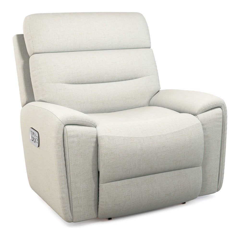 As an updated version of the billowy classic, Soren Power Rocking Recliner with Headrest combines your favorite recliner features with contemporary style. The full, foam-backed bucket chaise seat is spacious yet cozy, while the recliner, legrest and headrest offer a variety of positions. Simply use the side-mounted 4-button control panel to recline and raise your feet independently for perfectly customized comfort. There’s even a built-in USB port to power your phone or tablet. When you’re not reclining, it’s a relaxing rocker with a smooth, graceful motion. Make it yours with your choice of fabrics and other available upgrades.