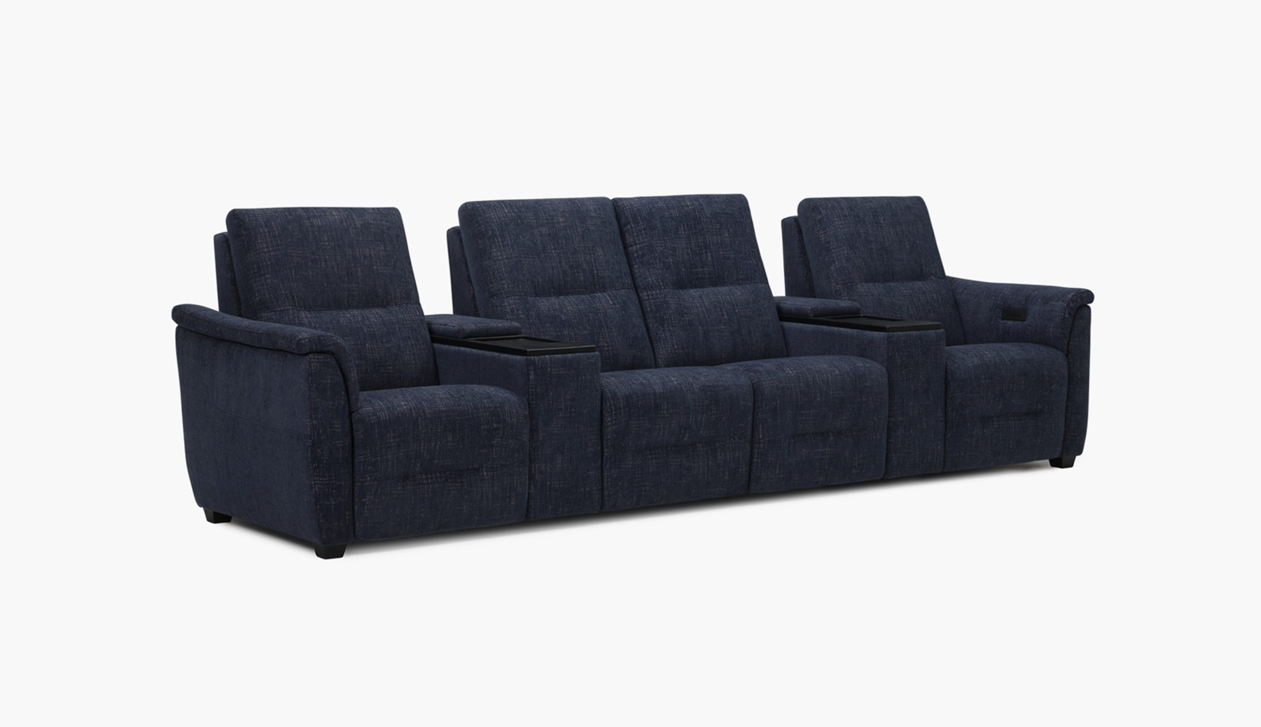 Oxford provides classic comfort with its padded armrest and decorative pull tuck detail on the seat and footrest. Standard with triple motor power recline, headrest, and lumbar, Oxford is also available with the Premium Amenities package and choice of walnut or black ash wood elements. Available in all leather, leather match, and fabrics, with the exception of accent fabrics.