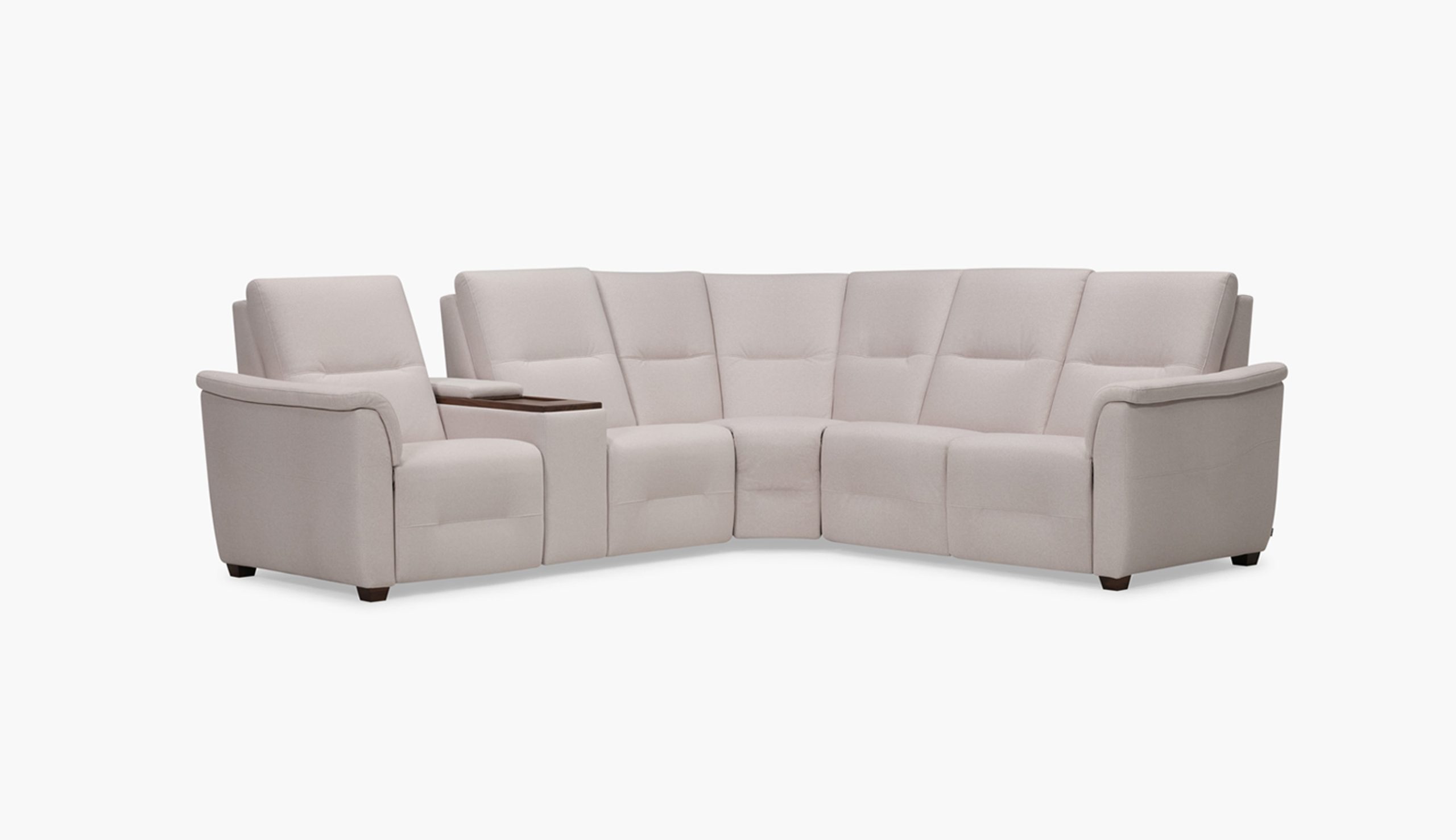 Oxford provides classic comfort with its padded armrest and decorative pull tuck detail on the seat and footrest. Standard with triple motor power recline, headrest, and lumbar, Oxford is also available with the Premium Amenities package and choice of walnut or black ash wood elements. Available in all leather, leather match, and fabrics, with the exception of accent fabrics.