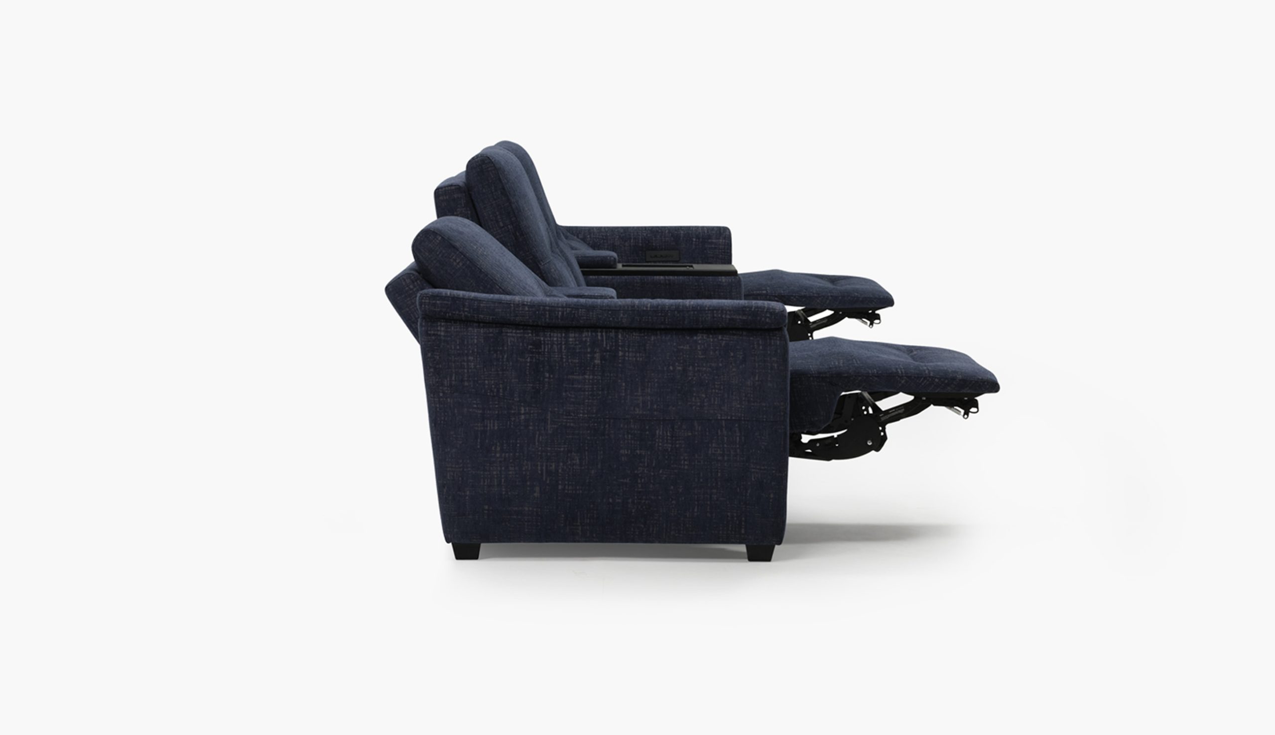 Oxford provides classic comfort with its padded armrest and decorative pull tuck detail on the seat and footrest. Standard with triple motor power recline, headrest, and lumbar, Oxford is also available with the Premium Amenities package and choice of walnut or black ash wood elements. Available in all leather, leather match, and fabrics, with the exception of accent fabrics.