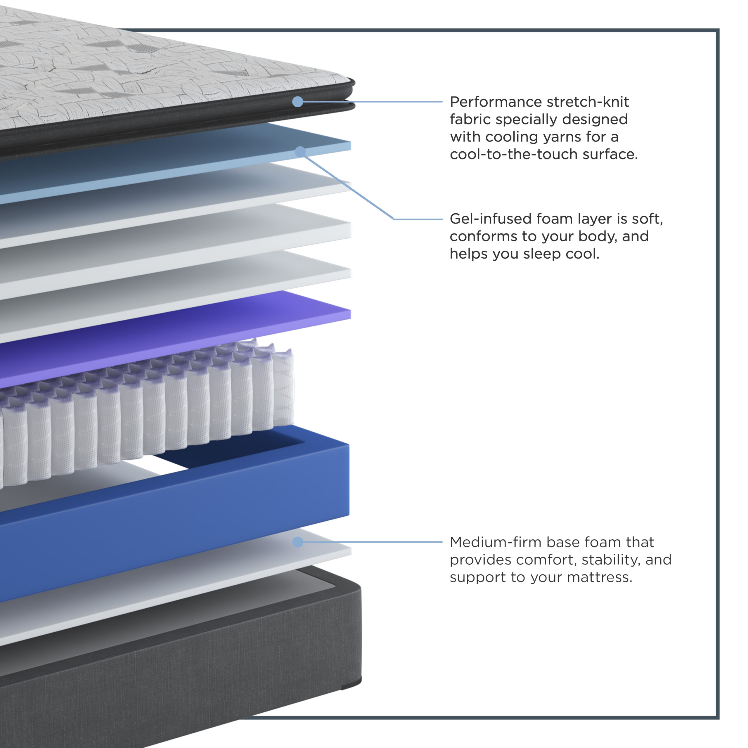 - The performance stretch-knit cover is designed with cooling yarns for a cool-to-the-touch surface.
